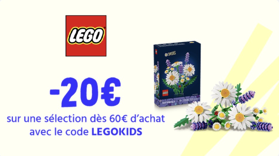 Cdiscount propose une offre spéciale sur les LEGO pour enfants. Utilisez le code promo "LEGOKIDS" lors de votre commande pour bénéficier d'une remise de -20€ dès 60€ sur la sélection LEGO Kids. Cette offre est idéale pour faire plaisir aux plus jeunes avec des jeux de construction de qualité.