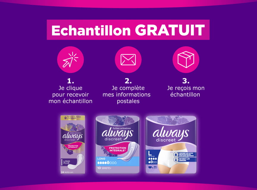 - Échantillons gratuits des protections Always Discreet
