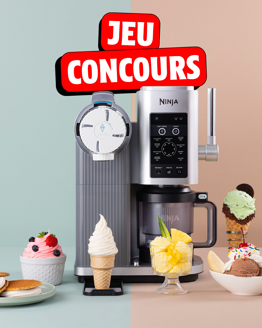 En jeu : une sorbetière Ninja Creami Swirl NC701EU.