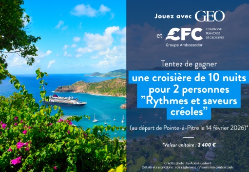 Jouez et tentez de remporter une croisière Rythmes et Saveurs créoles pour 2 personnes au départ de Pointe-à-Pitre le 14 février 2026 d'une valeur unitaire de 2400€.
