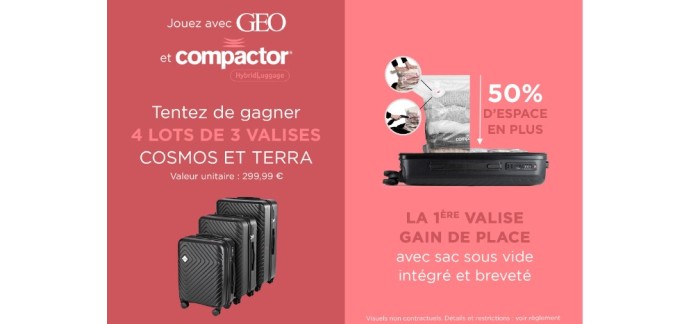 Jouez jusqu'au 2 janvier 2025 et tentez de remporter un des lots de 3 valises Cosmos et Terra d'une valeur unitaire de 300€.