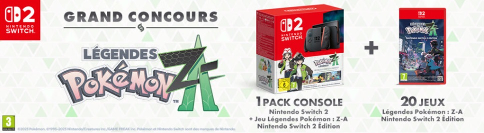 Jouez et tentez de gagner une console Nintendo Switch 2 avec le jeu "Légendes Pokémon : Z-A" 20 jeux vidéo Switch 2 "Légendes Pokémon : Z-A"