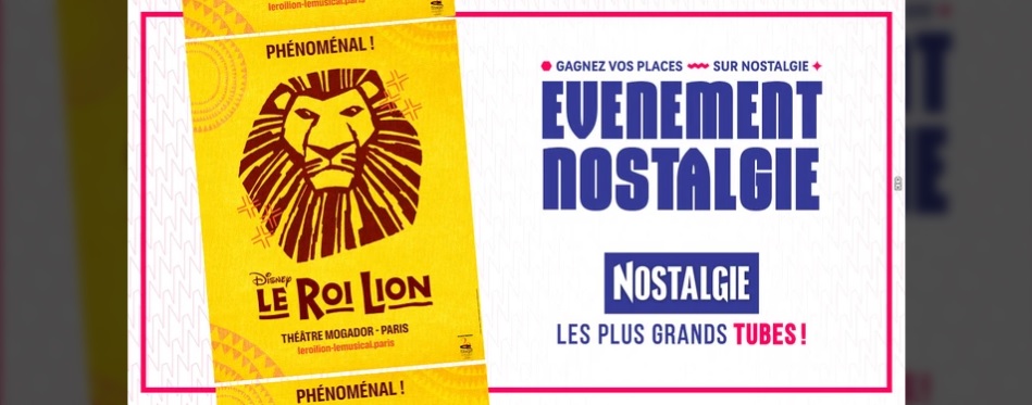 Le site nostalgie.fr vous offre l'opportunité de gagner l'un des 2 lots de 2 invitations pour le spectacle "Le Roi Lion" le 09 octobre à Paris.