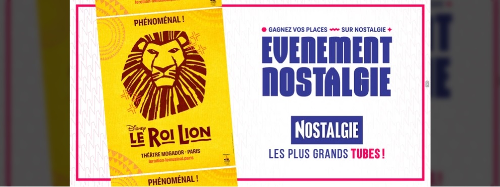 Nostalgie vous offre 2 invitations pour le spectacle évènement "Le Roi Lion" au Théâtre Mogador à Paris !