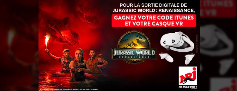 A l'occasion de la sortie digitale du film "Jurassic World : Renaissance", NRJ vous offre votre code iTunes pour (re)découvrir le film gratuitement et votre casque de réalité virtuelle VR.