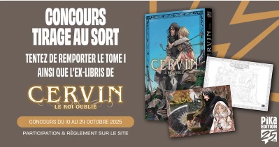 À l'occasion de la sortie du tome 1 de "Cervin - le roi oublié" le 15 octobre, le site vous propose un jeu-concours pour tenter de remporter un exemplaire du tome ainsi que l'exlibris de la série !