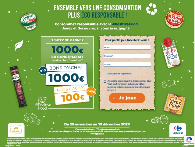 - Par tirage au sort : 10 bons d'achat Carrefour de 1000€