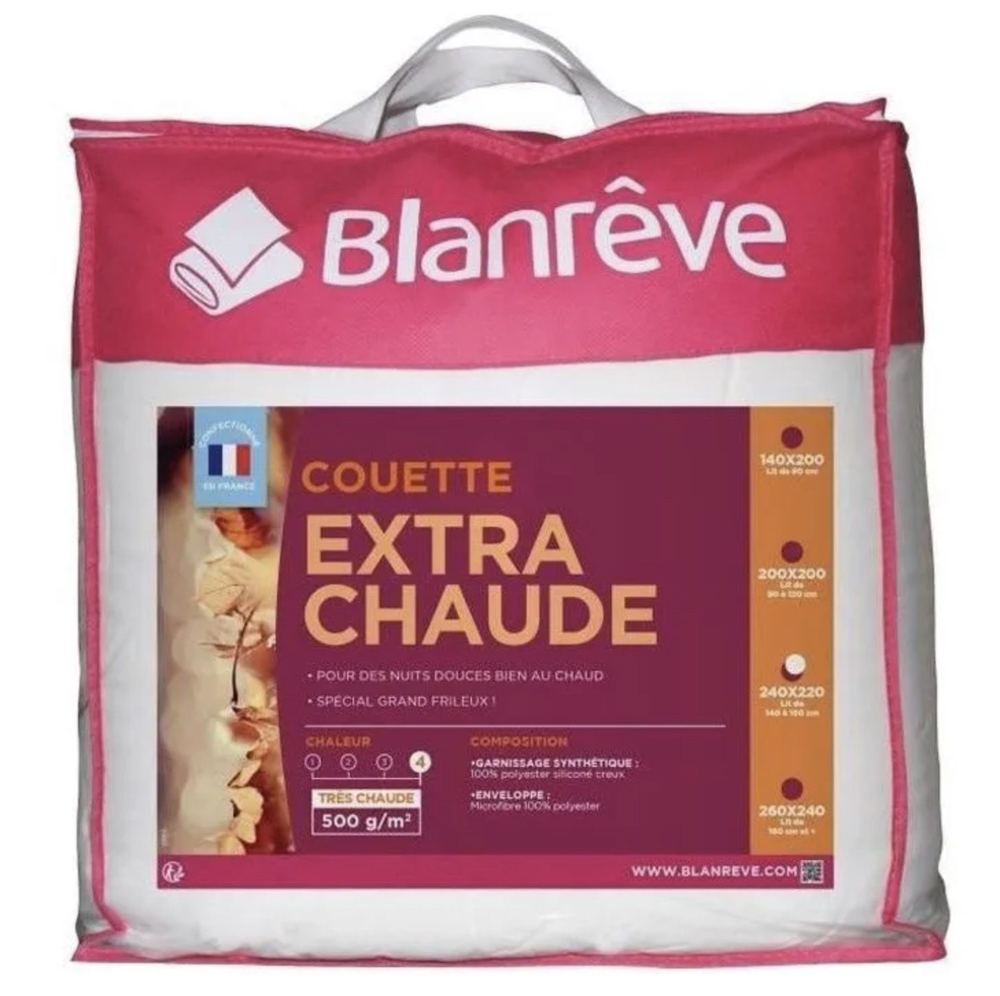 La couette extra chaude BLANREVE en microfibre, format 220x240 cm, est proposée à 34,99€ au lieu de 59,90€, soit 42% d'économies chez Cdiscount.