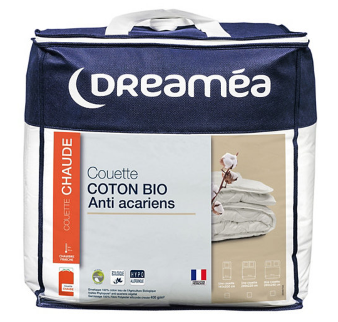 • Enveloppe : 100% coton issu de l'agriculture biologique non traité anti acariens