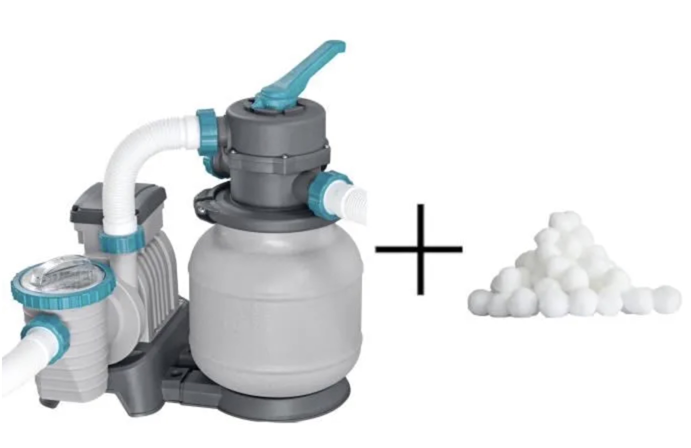 Profitez de 29% de réduction sur ce filtre à sable Bestway, idéal pour piscine jusqu'à 66 m3, avec pompe de filtration de 11 355 L/h, préfiltre et boules Polysphère (1000g).