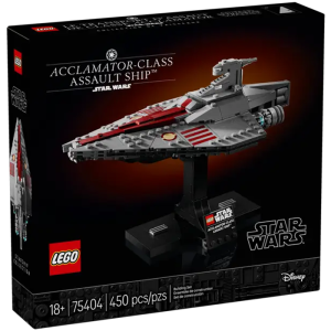 Set de construction Lego Star Wars pour adultes recréant le transport d'assaut classe Acclamator, présenté dans L'Attaque des clones. Ce vaisseau détaillé est destiné aux collectionneurs et passionnés de la saga.