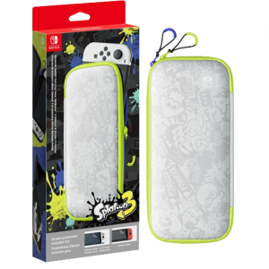 Il s'agit d'une housse de transport officielle Nintendo pour console Switch (compatible OLED), avec un design inspiré de Splatoon 3. Elle permet de protéger la console lors des déplacements.